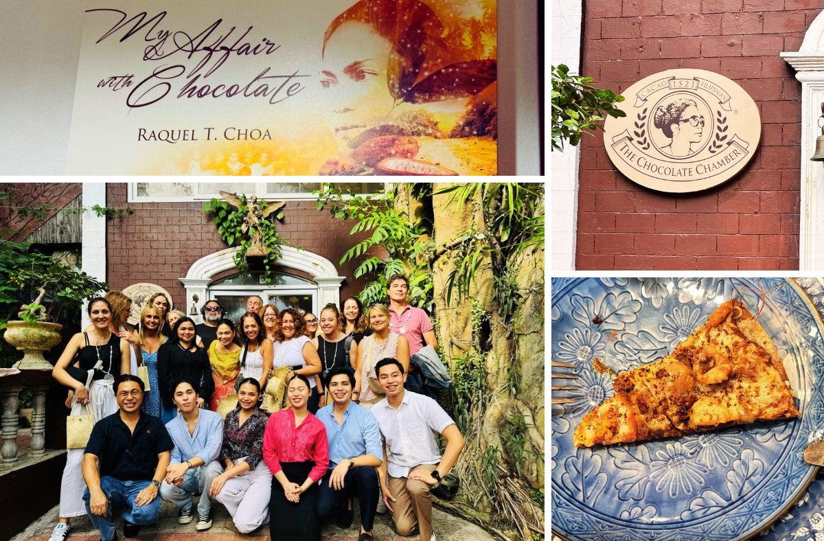 Para finalizar el día disfrutamos de un almuerzo algo diferente en la Casa del Cacao, de la mano de la Reina del Chocolate de Cebú, Raquel T. Choa, una experiencia que no te deja indiferente y en la que degustamos todo tipo de chocolates y recetas elaboradas con este delicioso ingrediente, incluso platos tan peculiares como pizza con cacao.
