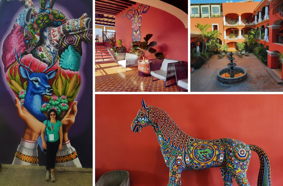 Nos alojamos en Quinta Nukari, un edificio histórico totalmente reformado. Es el único hotel boutique de esta región y está orientado al viajero que busca bienestar y confort en un entorno natural. Su decoración es exquisita y con todo de detalles artísticos que hace referencia a la cultura indígena Huichol.