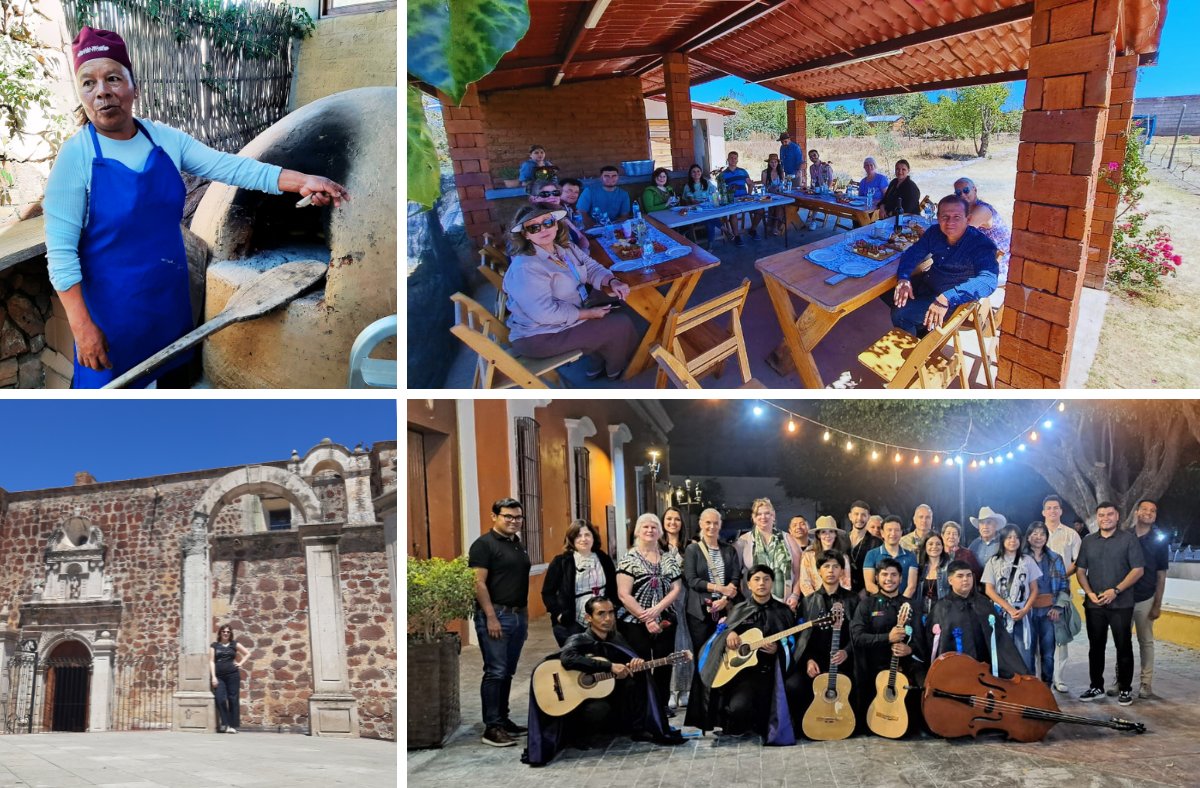 El segundo día del viaje llegamos hasta las tierras altas de Jala, donde visitamos la comunidad de mujeres “Manos de viento”, que forma parte de la comunidad indígena de Los Aguajes. Realizamos con ellas un taller de artesanía y creamos objetos hechos con hoja de pino. Después, disfrutamos de un espectacular desayuno cocinado en su fogón tradicional: café de olla, pan de mujer, quesadillas y otras delicias típicas mexicanas.